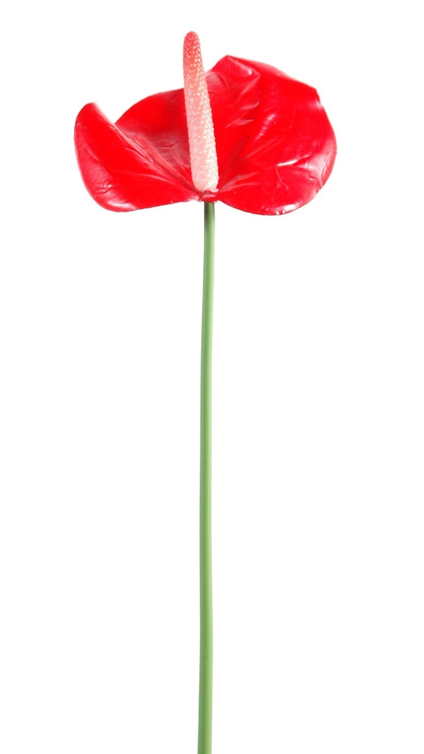 Die künstliche Anthurie (Latein: Anthurium) ist eine stilvolle und pflegeleichte Wahl für alle, die das Aussehen von frischen Blumen geniessen möchten, ohne sich um die Pflege kümmern zu müssen. Diese detailgetreue Nachbildung der Anthurie überzeugt durch ihre leuchtend roten Blüten und die eleganten, glänzenden Blätter, die dem Original in Form und Farbe nachempfunden sind. Mit ihrer auffälligen Erscheinung bringt diese Einzelblume frisches Leben in jeden Raum und eignet sich hervorragend für die Innendekoration.