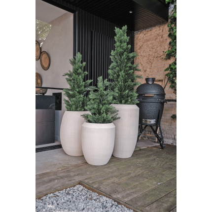 - Stabilität: Der Topf, in dem die Pflanze bereits fertig eingetopft ist, dient als Schutz. Sie können diesen Topf für noch mehr Stabilität durch einen dekorativen Übertopf ergänzen. Weitere Informationen finden Sie hier: Eintopfen von Kunstpflanzen.