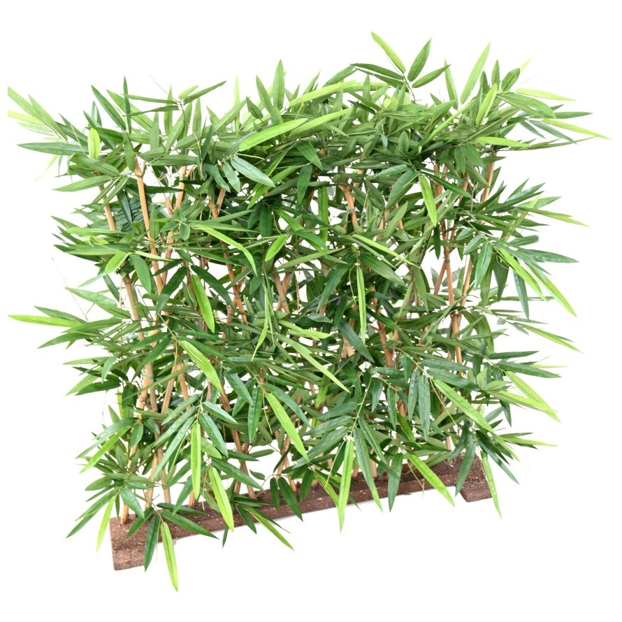 Entdecken Sie die künstliche Bambushecke "Artificial BAMBOO NEW HEDGE UV BASE 95" als ideale Lösung für Ihre Aussenbereiche. Mit einer Höhe von 110 cm, einer Breite von 120 cm und einer Tiefe von 40 cm bietet sie eine beeindruckende und pflegeleichte Alternative zu lebenden Pflanzen.