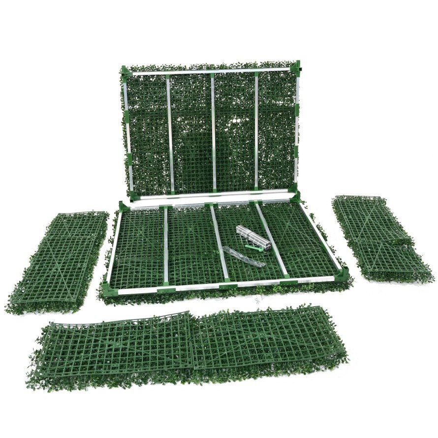 Entdecken Sie die künstliche Buchsbaumhecke mit einer neuen Aluminiumstruktur, die sich einfach zusammenbauen lässt. Diese Hecke bietet eine stilvolle und pflegeleichte Möglichkeit, Ihren Aussenbereich zu verschönern.