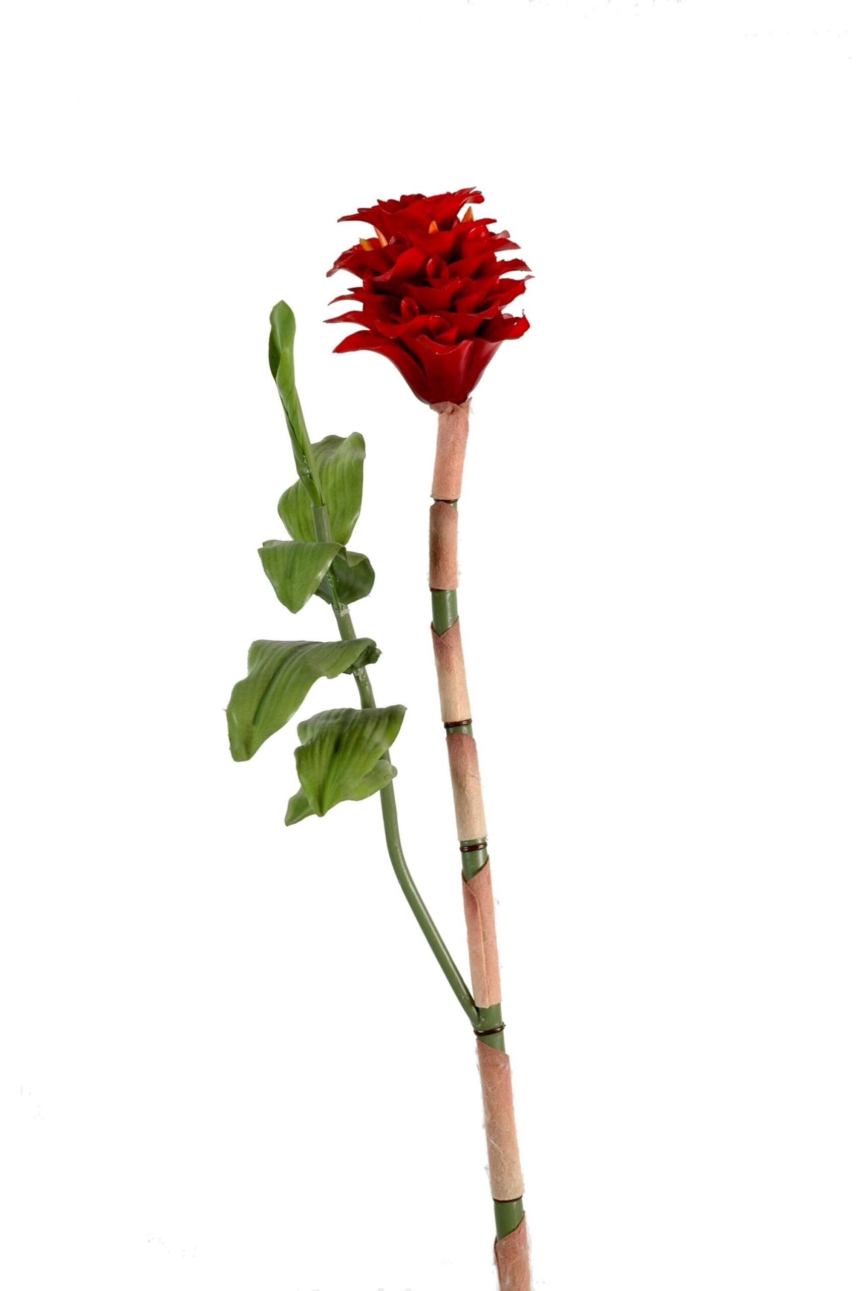 Die künstliche Ingwerblume (Latein: Zingiber) ist die perfekte Wahl für alle, die lebendige Farben und tropisches Flair in ihre Räume bringen möchten, ohne sich um die Pflege kümmern zu müssen. Diese detailgetreue Nachbildung der Ingwerblume überzeugt durch ihre leuchtend roten Blüten und die realistisch gestalteten Blätter, die dem Original nachempfunden sind. Mit einer Höhe von 70 cm ist diese Einzelblume ein echter Blickfang in jedem Raum.