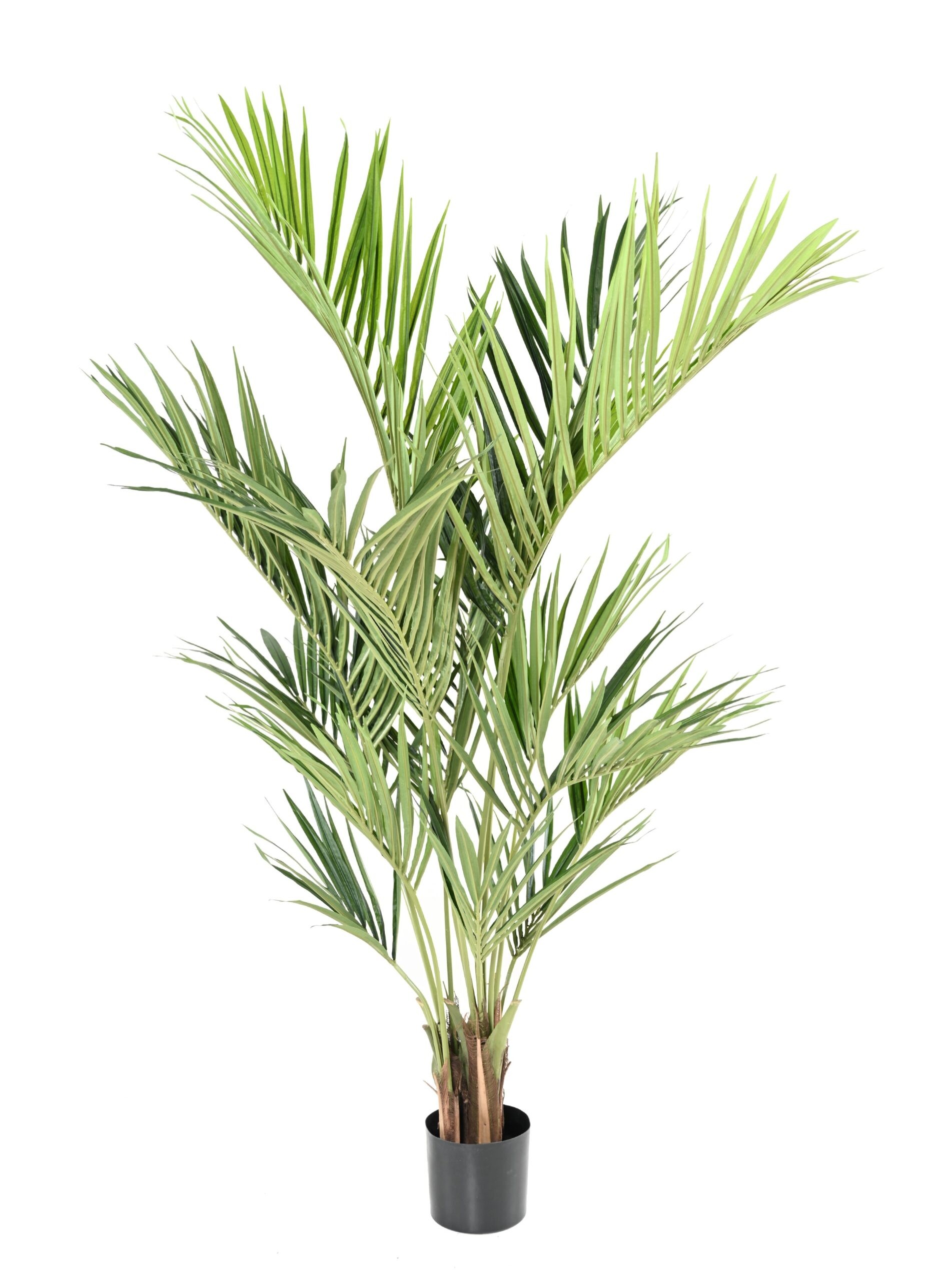 Die künstliche Kentia-Palme (Latein: Howea forsteriana) ist eine beliebte Wahl für Innenräume und bringt mit ihrem üppigen, grünen Blattwerk einen Hauch von Tropenflair in Ihr Zuhause. Diese detailgetreue Nachbildung der Kentia-Palme überzeugt durch ihre realistische Optik und hochwertige Verarbeitung. Mit einer Höhe von 190 cm und einer Breite von 120 cm ist sie ein imposanter Blickfang, der jedem Raum Leben einhaucht.