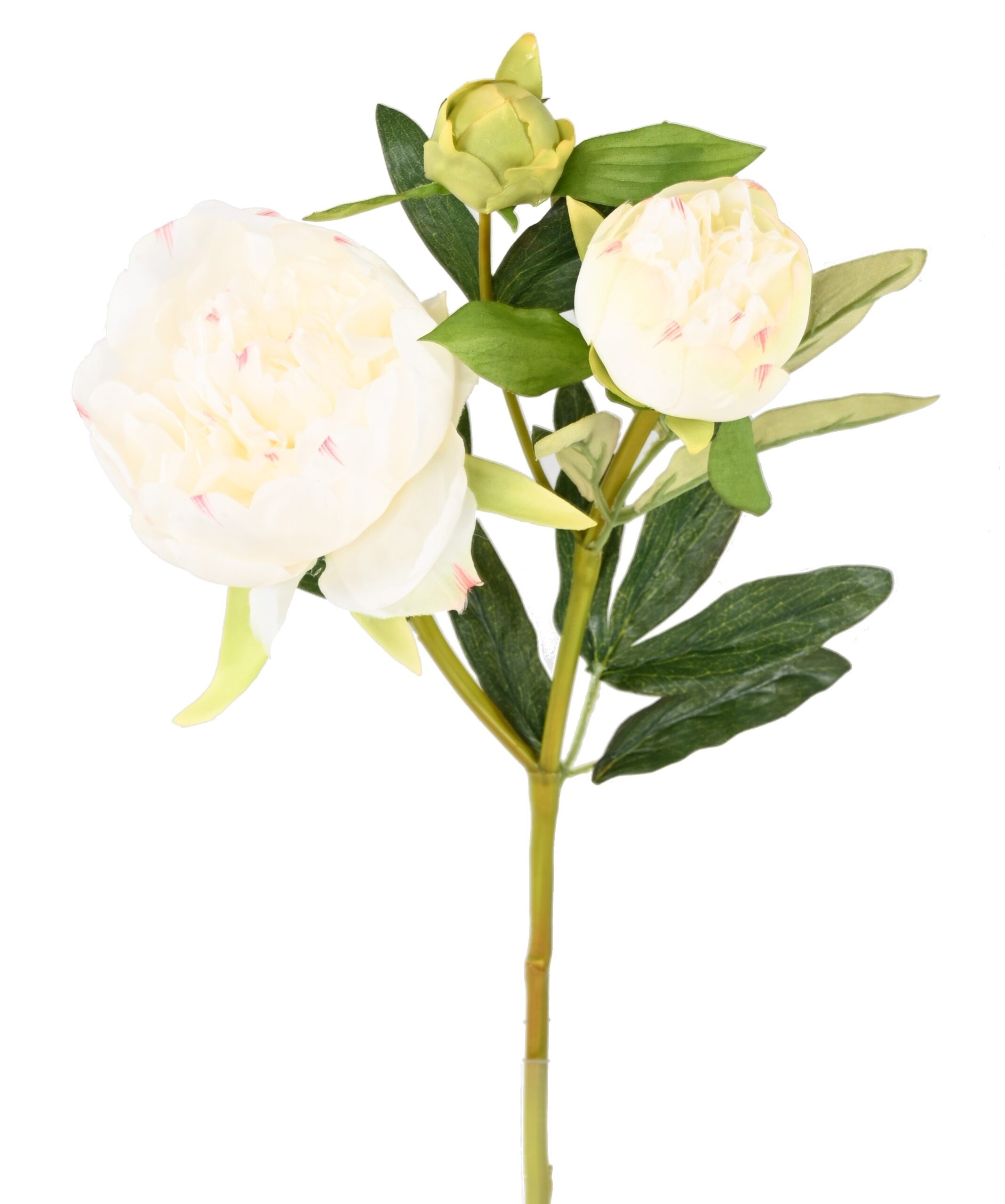 Die künstliche Pfingstrose (Latein: Paeonia) ist eine exquisite Wahl für alle, die die Schönheit von Blumen geniessen möchten, ohne sich um die Pflege kümmern zu müssen. Diese detailgetreue Nachbildung der Pfingstrose überzeugt durch ihre strahlend weissen Blüten und die lebendig gestalteten Blätter, die in Form und Farbe dem Original nachempfunden sind. Mit ihrer eleganten Erscheinung bringt diese Blume frisches Leben in jeden Raum und eignet sich hervorragend für die Innendekoration.