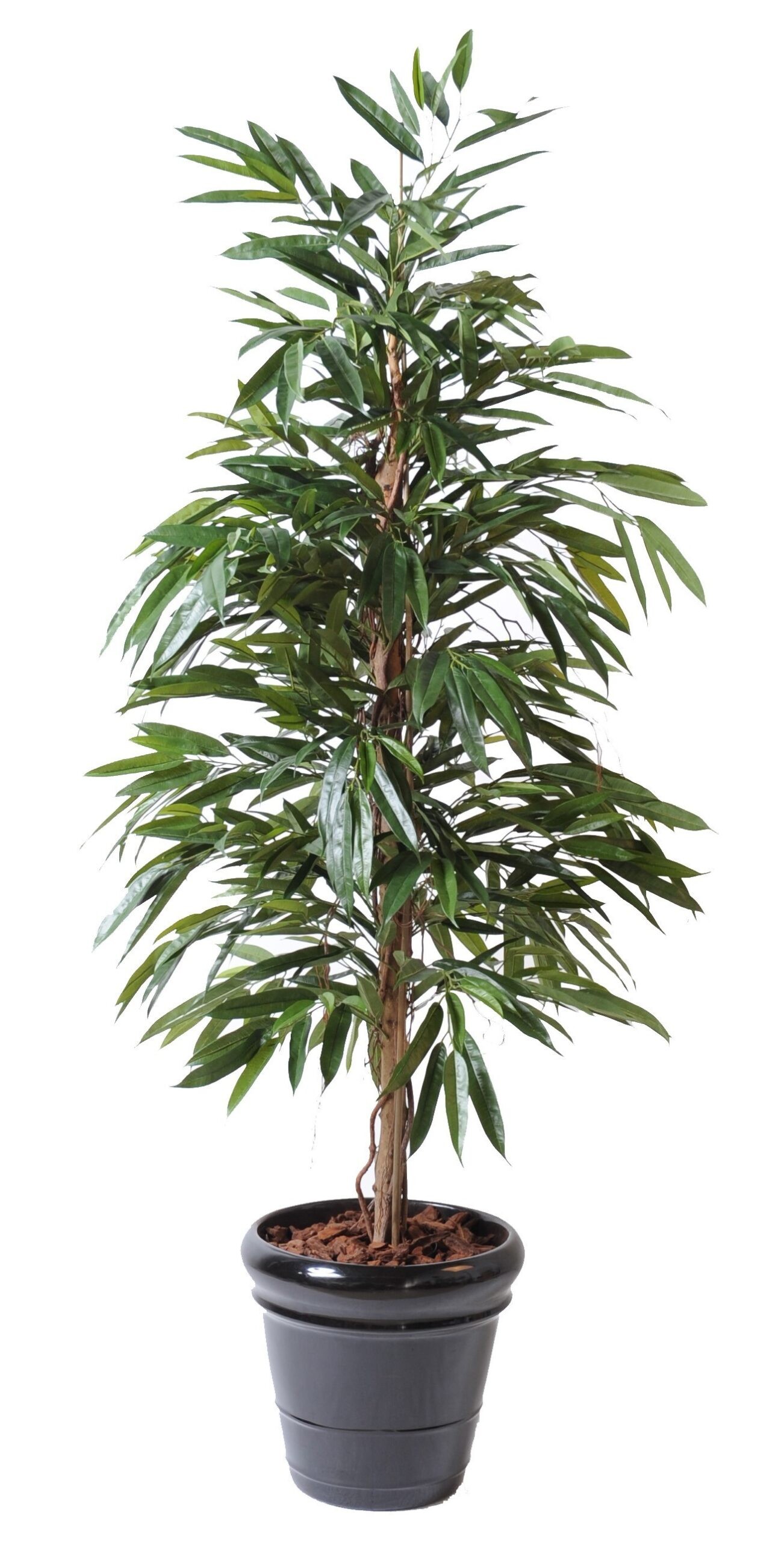 Der künstliche Ficus Alii (Latein: Ficus maclellandii) ist eine beliebte Zimmerpflanze, die für ihre eleganten, schmalen Blätter geschätzt wird. Diese detailgetreue Nachbildung des Ficus Alii überzeugt durch hochwertige textile Blätter, die in Form und Farbe dem Original nachempfunden sind. Mit seiner beeindruckenden Höhe und der lebendigen Farbgebung bringt dieser Baum frisches Leben in jeden Raum.