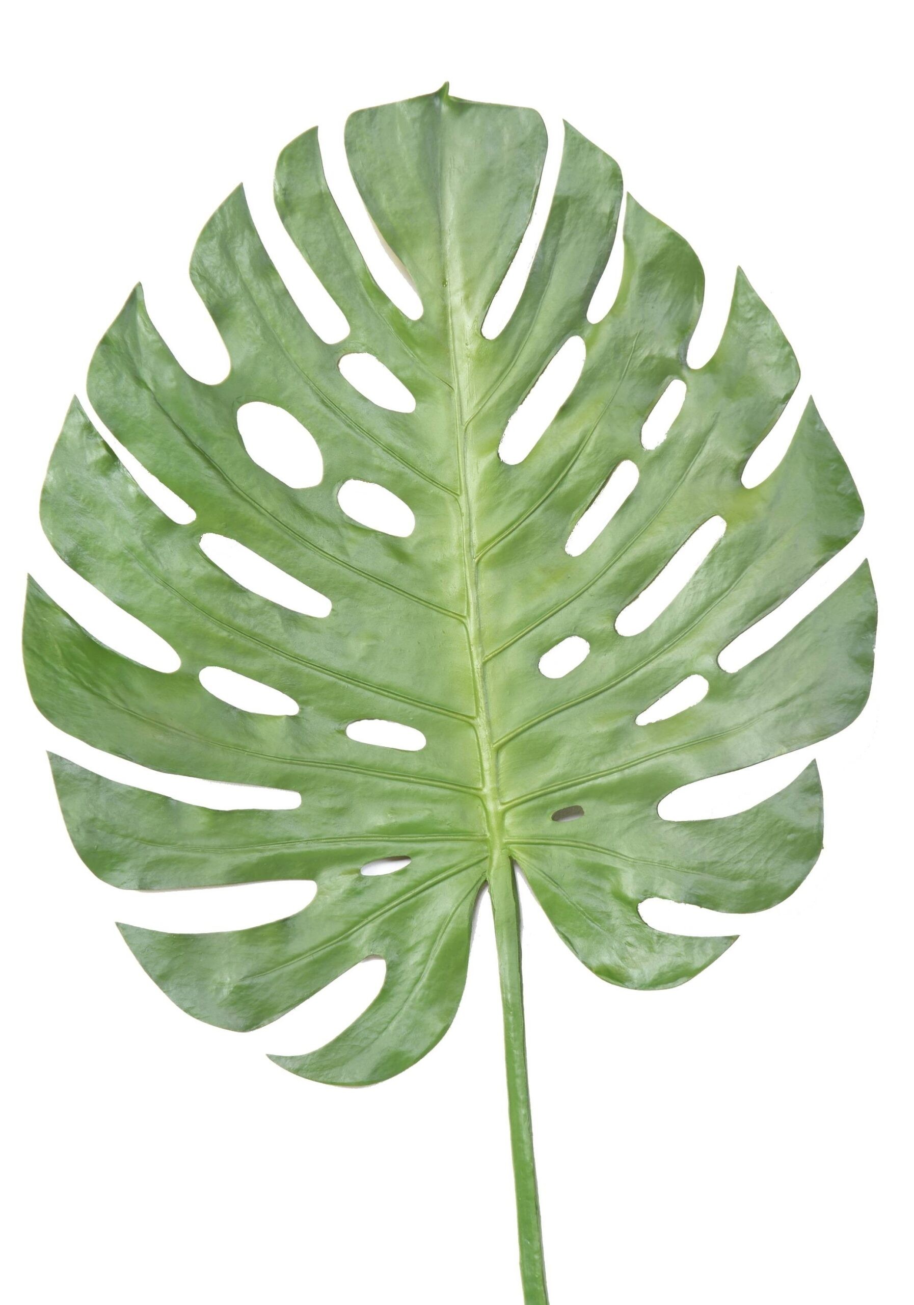 Der Künstliche Monstera Blattzweig ist eine beeindruckende Nachbildung eines Monstera-Blattes, das mit seiner lebendigen grünen Farbe und der charakteristischen Form einen Hauch von tropischem Flair in jeden Raum bringt. Mit einer Höhe von 120 cm und einer Breite von 54 cm ist dieser Blattzweig ein echter Blickfang, der sowohl in Einzelvasen als auch in Arrangements zur Geltung kommt.