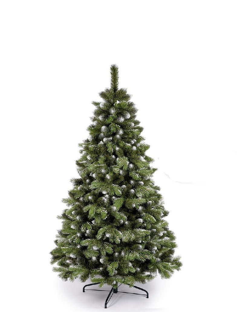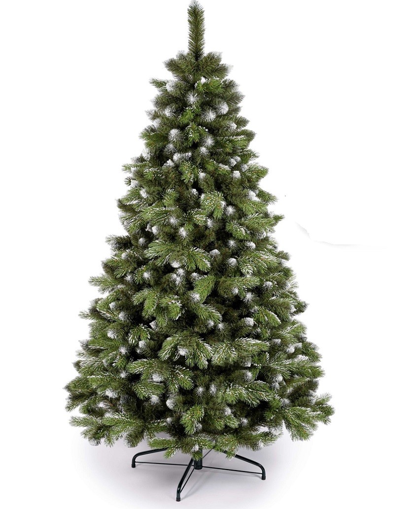 Innen liegende PVC-Zweige sorgen für Fülle, aussen platzierte PE-Spitzen sind zweifarbig gestaltet: sattgrün an der Basis, mit zarten weissgetönten Spitzen für einen natürlichen Schneeeffekt.