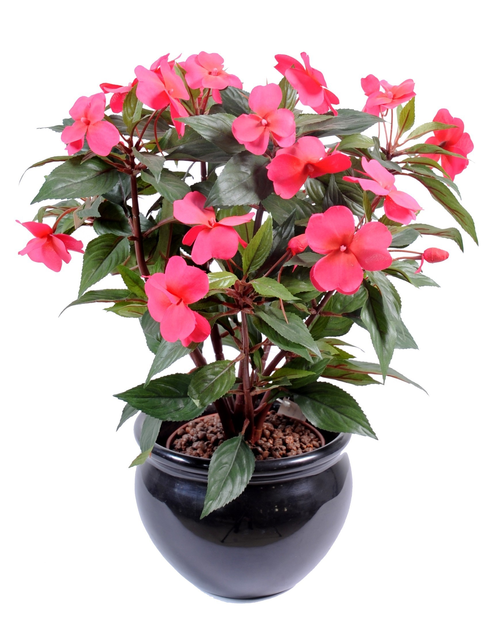 Das künstliche Fleissige Lieschen (40 cm) überzeugt mit intensiven fuchsiafarbenen Blüten und naturgetreu ausgearbeiteten Blättern. Die kompakte Form eignet sich ideal als farbiger Akzent in Wohnräumen, Empfangsbereichen oder Schaufenstern – ganz ohne Pflege oder Bewässerung.