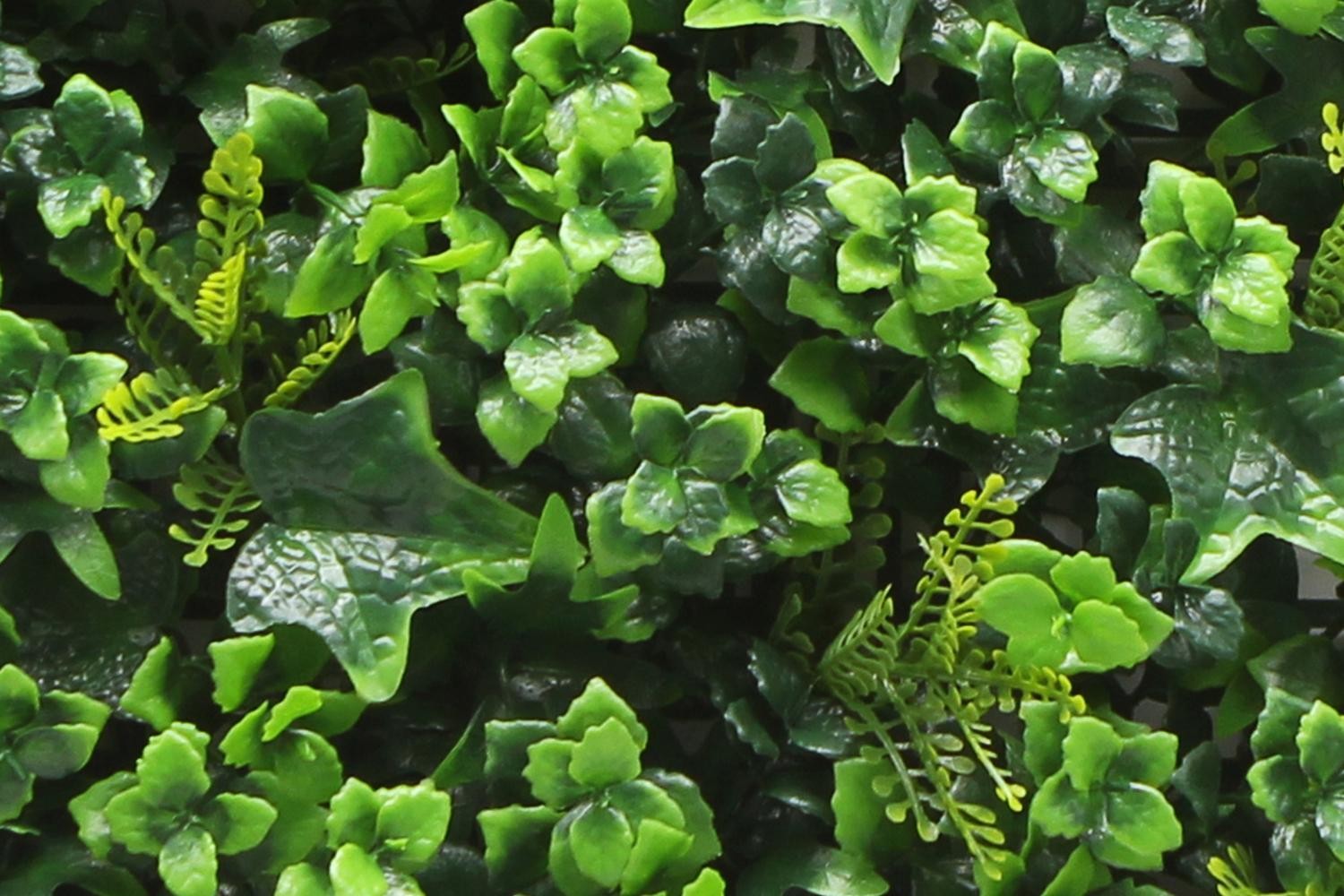 Entdecken Sie mit den Mix Vert Paneelen die ideale Lösung für Ihre künstlichen Heckenprojekte im Innen- und Aussenbereich! Diese robusten Paneele überzeugen nicht nur durch ihre praktische Grösse von 100 x 100 cm, sondern auch durch ihr geringes Gewicht von nur 2,24 kg/m², was die Handhabung zum Kinderspiel macht. Egal, ob Sie eine langlebige und ästhetische Lösung für Gartenprojekte, Terrassen oder dekorative Elemente in Ihrem Zuhause suchen: Mix Vert setzt neue Massstäbe in Qualität und Funktionalität. Die Paneele bestehen aus hochwertigem Polyethylen, das nicht nur für seine Langlebigkeit bekannt ist, sondern auch eine hervorragende UV-Stabilität aufweist. Sie sind für den Ausseneinsatz bis zu 5 Jahre geeignet und halten in Innenräumen sogar bis zu 8 Jahre, was sie zur perfekten Wahl für vielfältige Anwendungen macht.