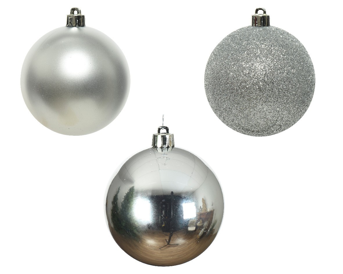 Das 10-teilige Kugelset in Silber bringt edlen Glanz in Ihre Weihnachtsdekoration und ist speziell abgestimmt auf künstliche Christbäume. Die Kugel sind bruchsicher gefertigt und in drei Oberflächen‑Varianten gestaltet – für eine stilvolle Kombination aus dezentem Matt, klassischem Glanz und funkelndem Glitter.